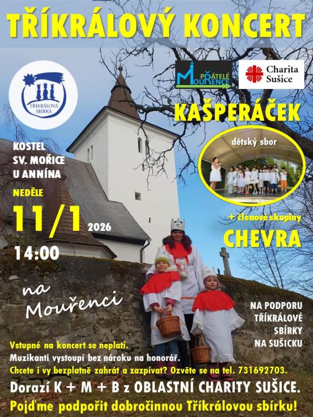 * ne 11. 1. 2026 (14:00) Tříkrálový koncert u příležitosti ukončení Tříkrálové sbírky na Sušicku